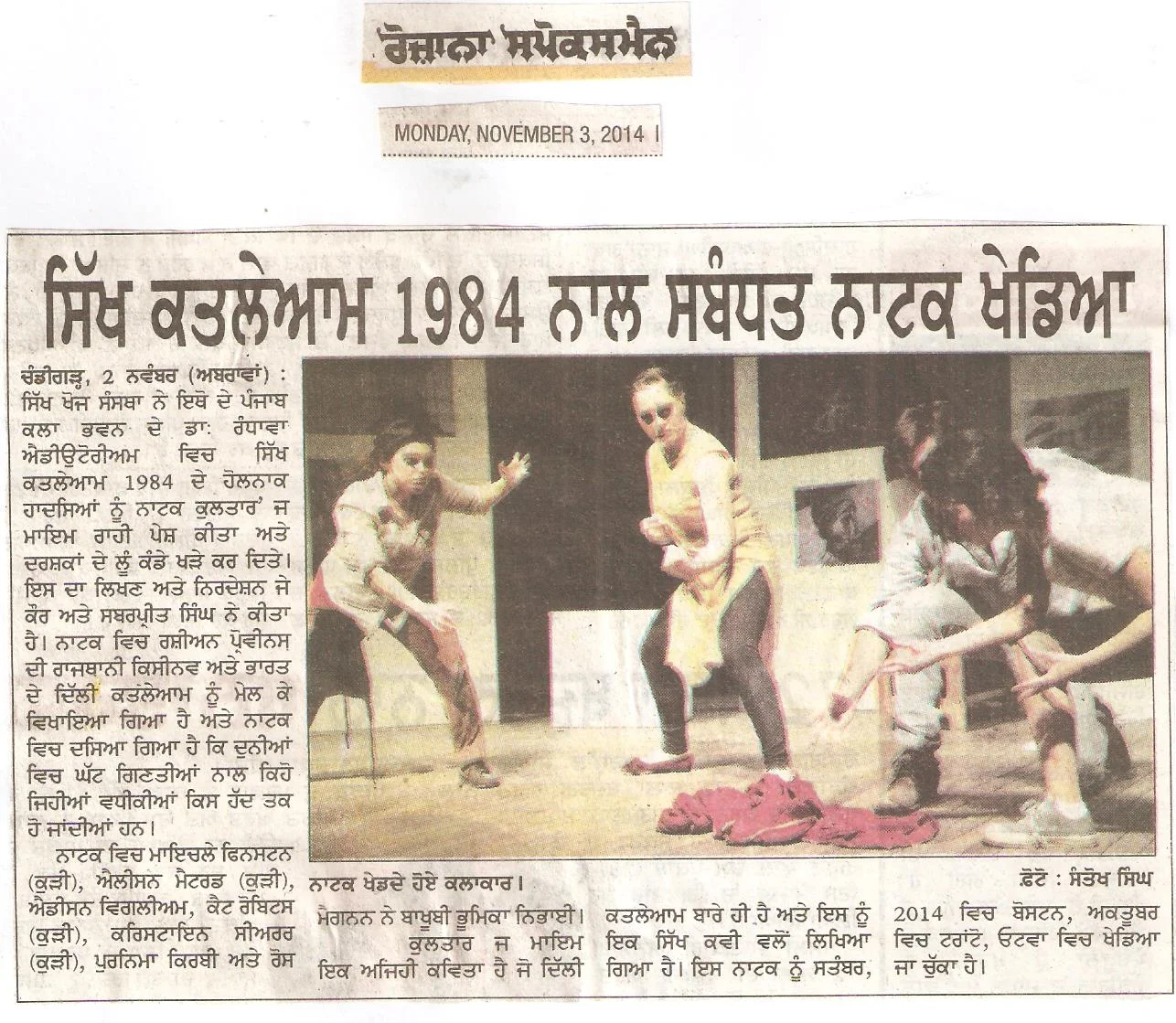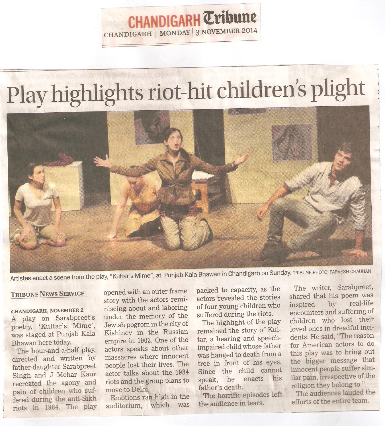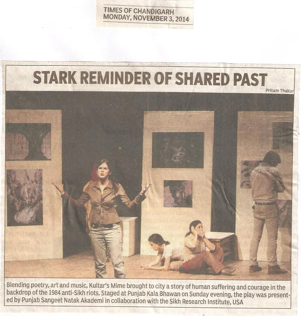 A devised piece about a group of artists exploring the 1984 Anti-Sikh pogrom through a brand new exhibition: Kultar's Mime. Draws from texts by Sarbpreet Singh and Chaim Nachman Bialik with original artwork by Evanleigh Davis.