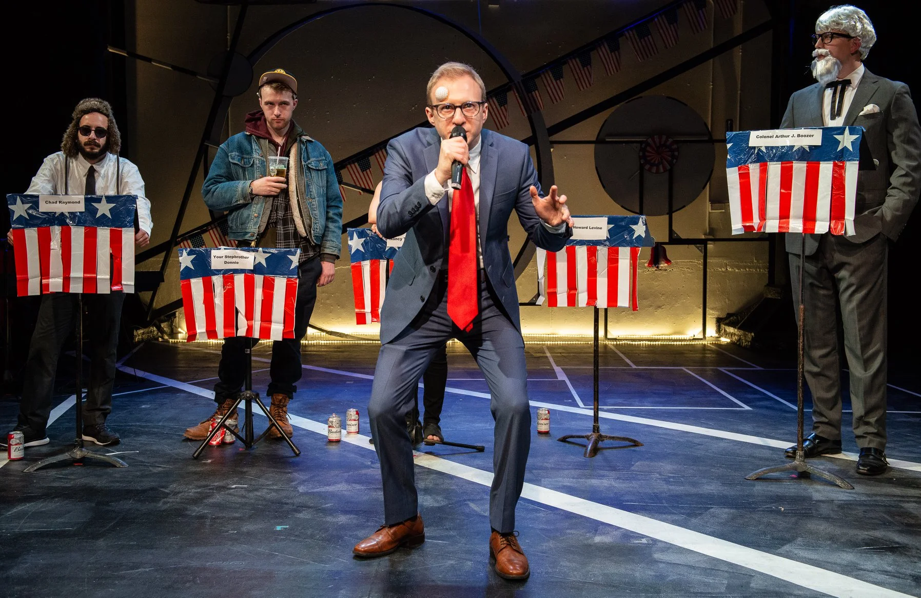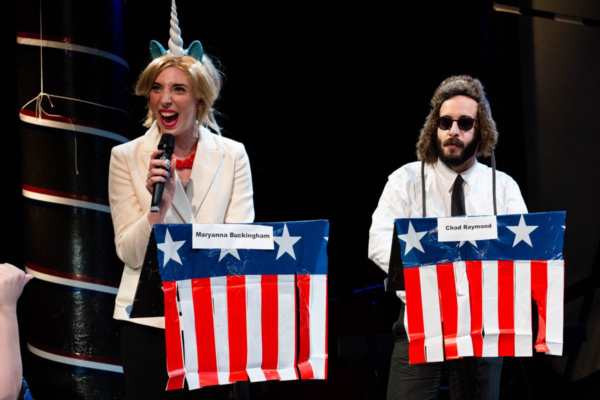 The first ever FGP Festival featured this experimental art party that celebrated, interrogated, and ultimately excoriated the highest office in the land. A talented group of unique, visionary candidates participated in a full-fledged presidential election, including campaign speeches and a moderated debate. The constituents (audience) voted, and a new 'president elect' was inaugurated. By the end of the night, the president was protested and impeached - and then we really partied.