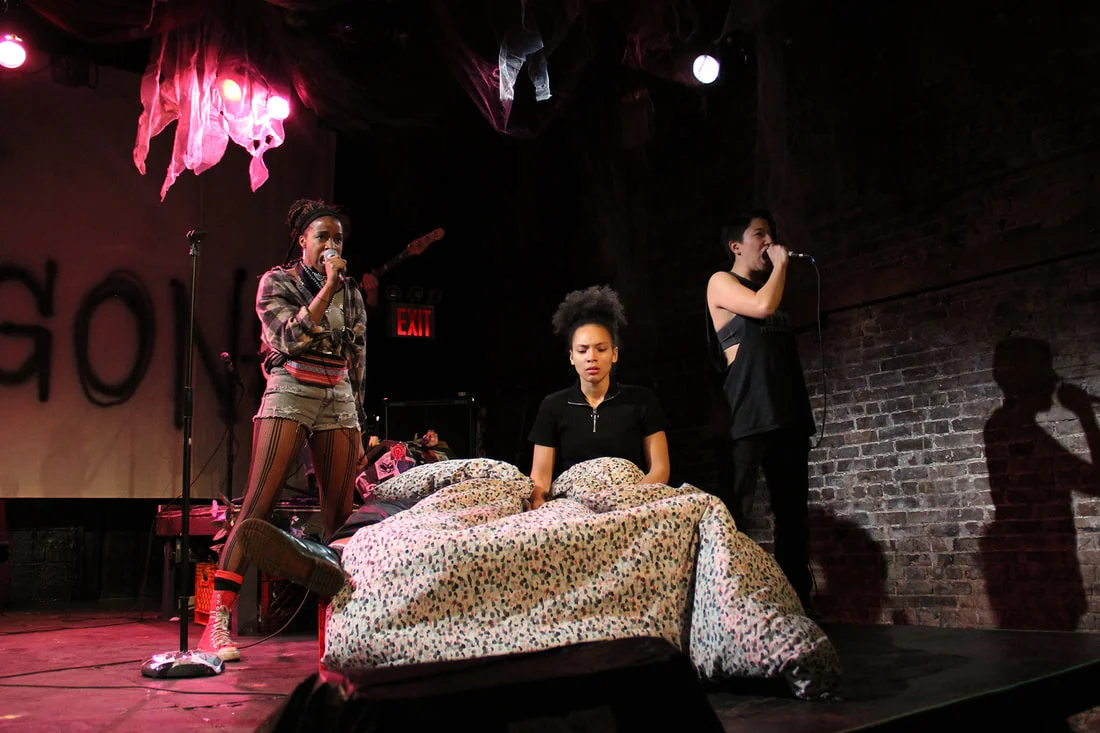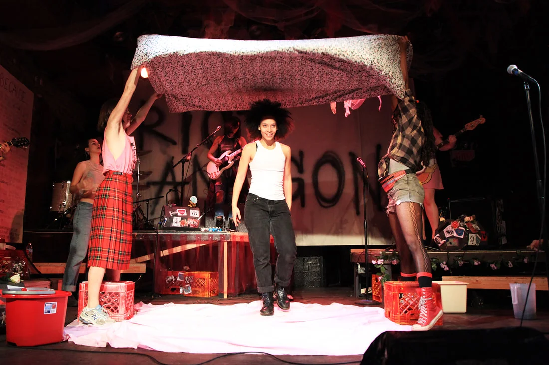 Seonjae Kim's new take on Sophocles' tragedy, told from the perspective of a Chorus Leader and her all-female punk band, reminiscent of the 90s' Riot Grrrl movement iconized by bands like Bikini Kill, Sleater-Kinney and Bratmobile. Through explosive live music, percussive movement and primal poetry, a chorus of young women tell the myth of Antigone through a feminist lens. A ritualistic and passionate rock concert as well as an intimate coming of age story, RIOT ANTIGONE is about the power of an individual who dares to carry a revolution upon herself.